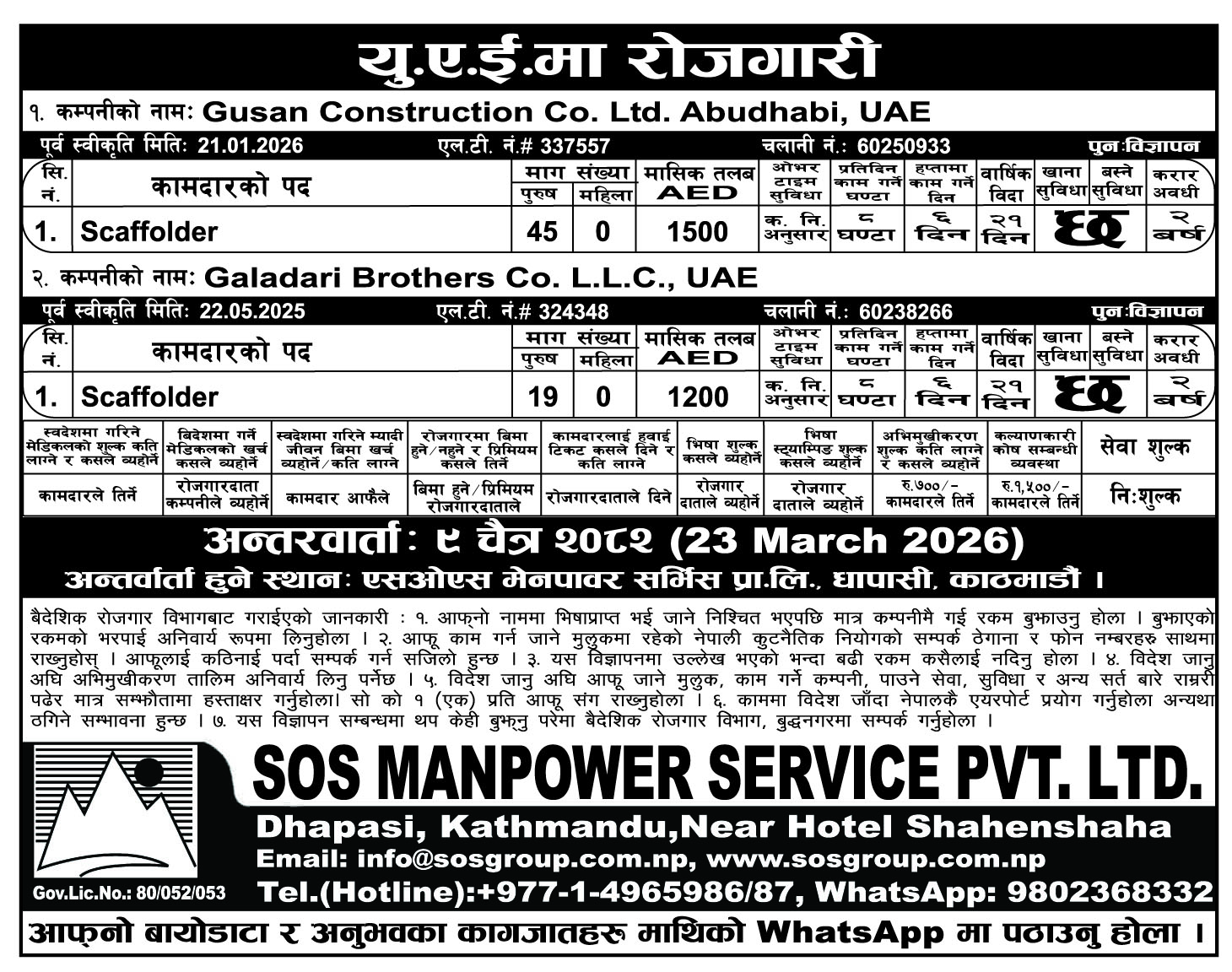Gusan Construction and Galadari Brothers, UAE